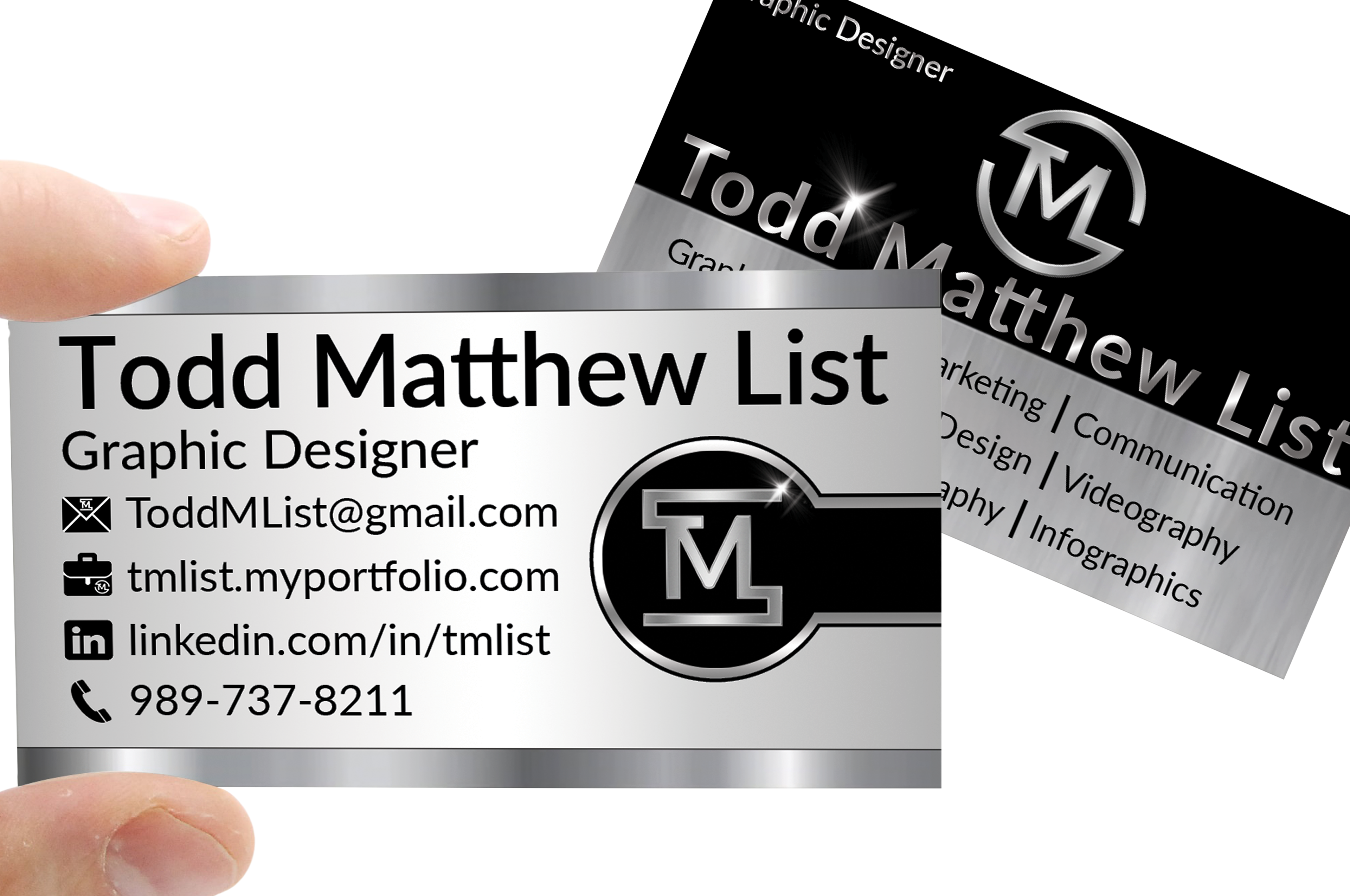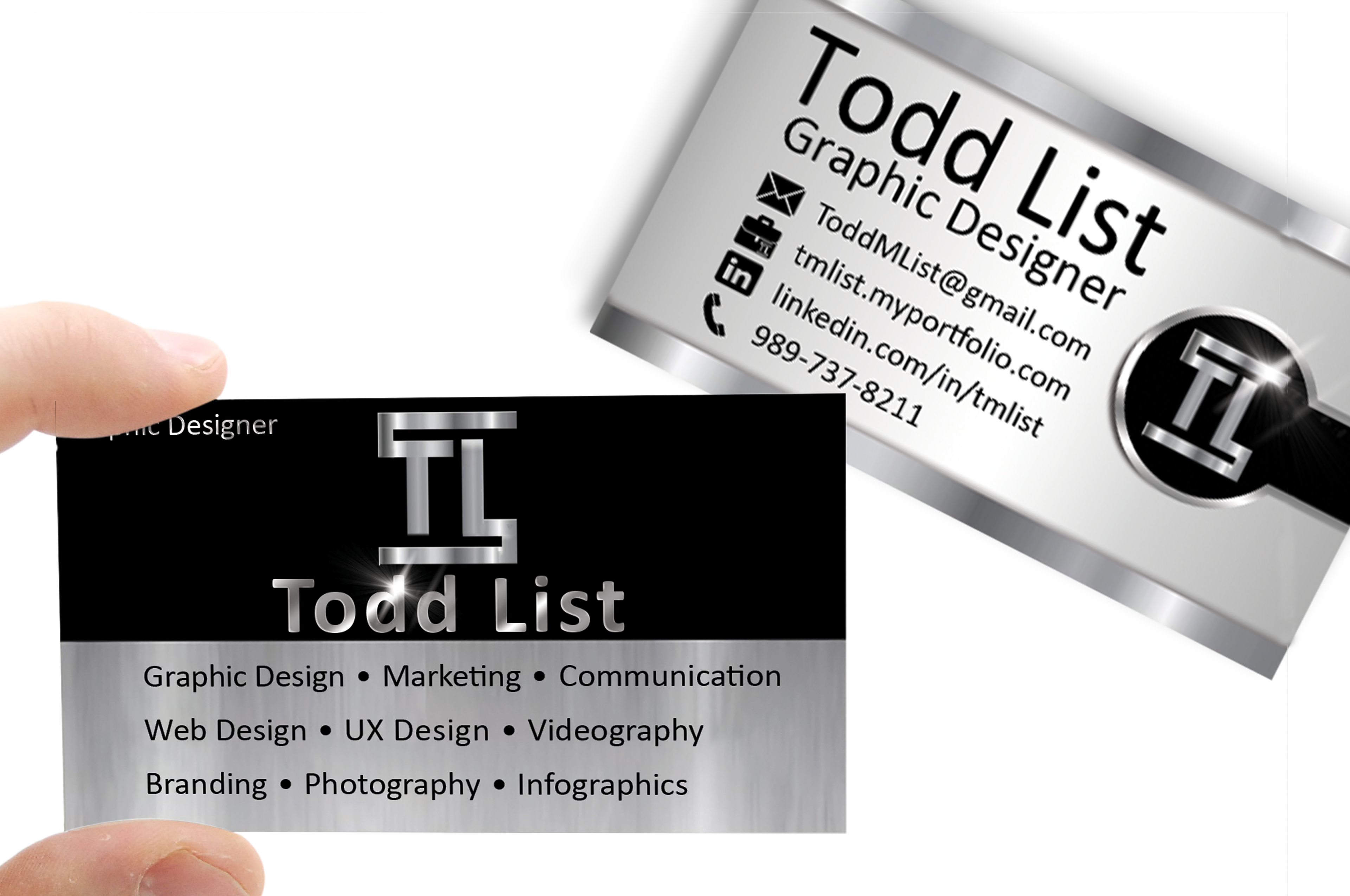 I designed my business card with a clean, professional aesthetic, featuring a sleek black background complemented by a platinum-inspired accent. The minimalist design and refined color palette were chosen to convey a sense of sophistication, modernity, and attention to detail—reflecting both my personal brand and design philosophy.